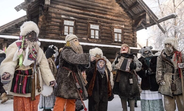 وفي بعض المناطق الروسية، لا تزال عادة “كوليادكي” حاضرة، وهي أغان طقسية تراثية تُؤدّى خلال الفترة الممتدة من عيد الميلاد حتى عيد الغطاس. وكان الشباب، في السابق، يطوفون على المنازل مرتدين أزياء تنكرية، أشهرها أقنعة الماعز أو الدب، بهدف نشر البهجة والفرح، انطلاقا من اعتقاد قديم مفاده أن البداية المرِحة للعام تضمن سنة سعيدة، وهو ما انعكس في المثل الشائع: “كما تستقبل عامك، تقضيه”.