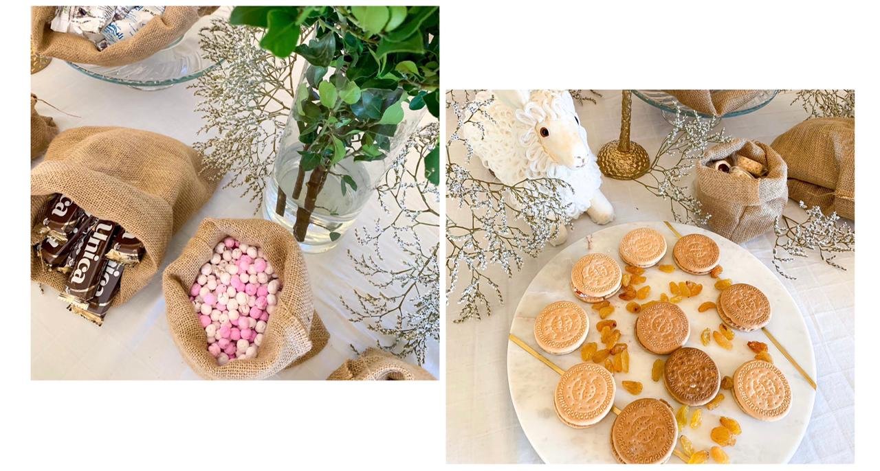 واعتمدت رشا مبدأ البساطة في التزيين مراعاةً للظروف الإقتصادية الصعبة التي يمر بها لبنان، حيث اختارت أصناف الحلويات اللبنانية الصنع وخاصة القديمة منها، لتعيد متابعيها الى أيام الزمن الجميل وخاصة طفولتهم التي لم تخلو منها، مثل بسكويت الدبكة، والراحة مع البسكويت، والتي أضفت النكهة اللبنانية الأصيلة على سفرتها. الى جانب ذلك، استخدمت أكياس الخيش؛ اليدوية الصنع، للزينة ووضع الحلويات والسكاكر فيها، بعيداً عن البهرجة والفخفخة.